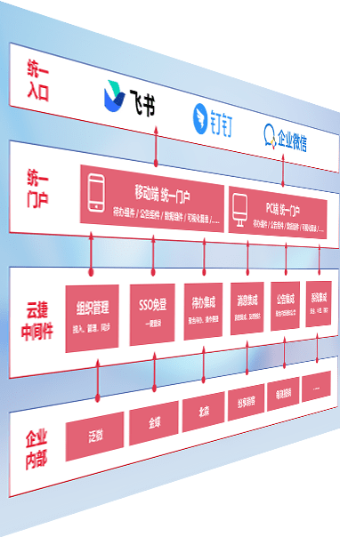 对协作平台提供支持服务,,,支持企业应用与协作平台对接,,,,包含组织同步、、、消息集成、、、、待办集成等。。。支持目前主流的协作平台:钉钉、、、企微和飞书。。。。